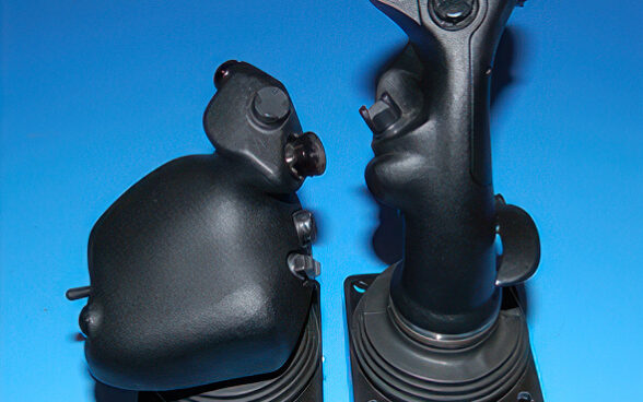 Fully populated 3-axis joystick inceptor and 2-axis throttle. Both units output data over TCP broadcast at 400 Hz