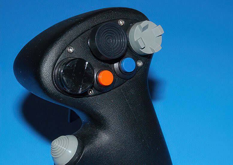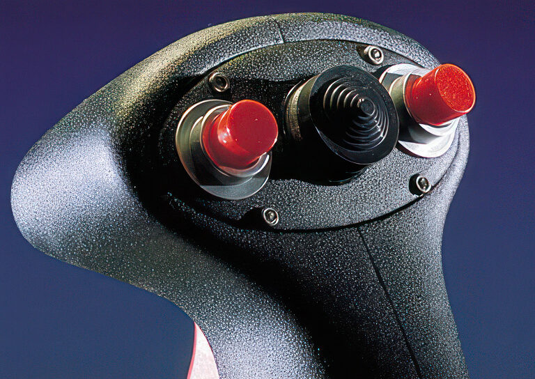The JFx series joysticks are available in three-axis (roll, pitch, and twist – model JF3) and two-axis (roll and pitch – model JF2) versions. All joysticks have a single-position trigger, but various configurations of switches are available to be mounted in the head of the joystick, and custom configurations can be accommodated.